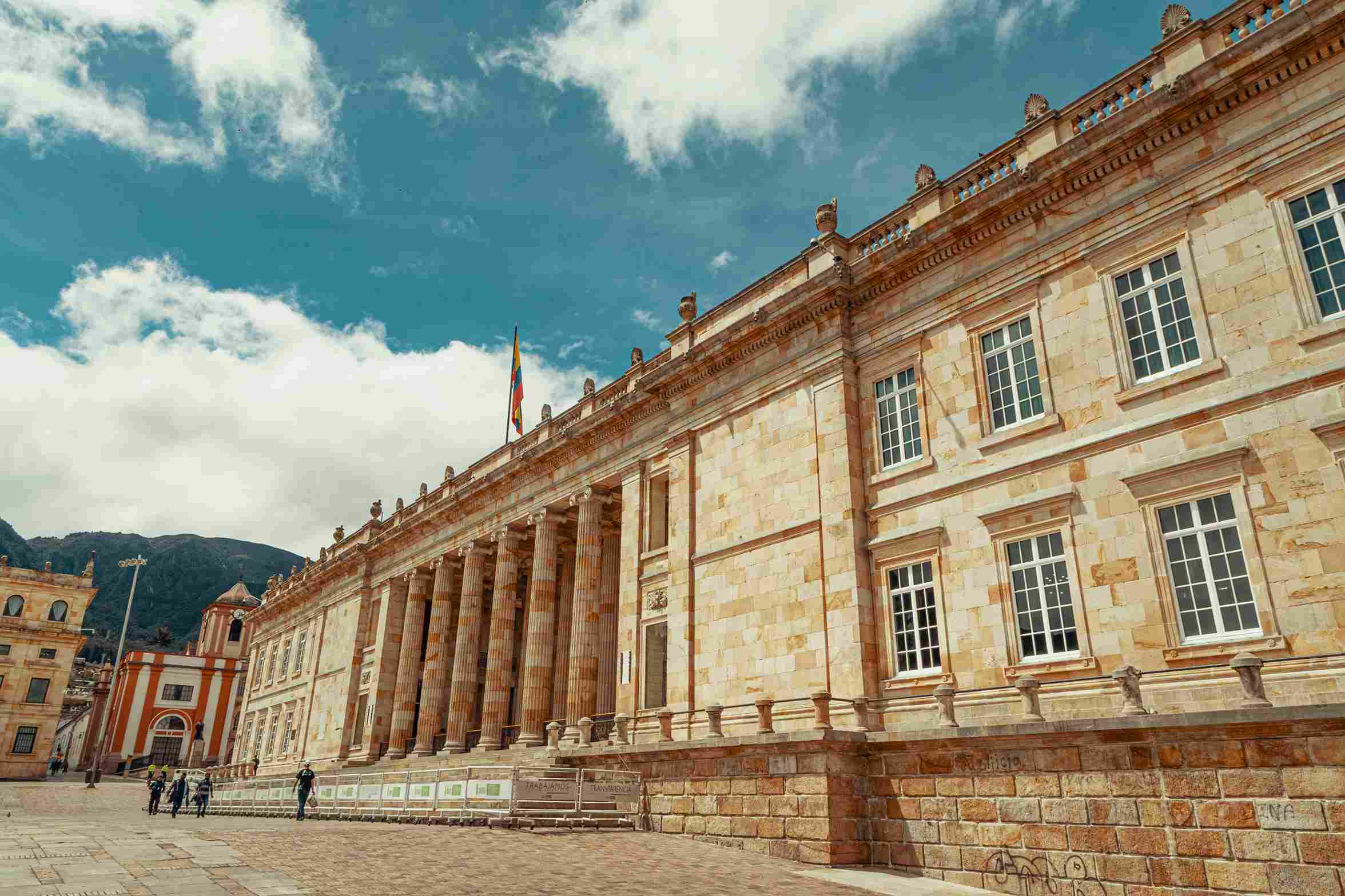 Cómo llegarEl Capitolio Nacional es una obra maestra de la arquitectura neoclásica y símbolo del poder legislativo en Colombia. El edificio diseñado por el famoso arquitecto danés Thomas Reed tuvo una larga construcción. Iniciada en 1848 por orden del presidente Tomás Cipriano de Mosquera y levantada completamente en piedra, la obra se extendió durante casi 80 años hasta 1926. En su construcción participaron importantes arquitectos de la época como el italiano Pietro Cantini (quien incluyó algunas reformas en el frontis), Antonio Clopatofsky, el arquitecto bogotano Mariano Santamaría (quién diseñó el costado sur, levantó las columnas del patio interior, el frontón y el pórtico), y el francés Gastón Lelarge (quien demolió el pórtico construido por Santamaría y lo reemplazó por el actual, diseñó los salones legislativos y las dependencias interiores y construyó las escalinatas exteriores). La ornamentación de la construcción fue realizada por el suizo Luigi Ramelli.