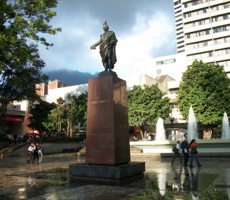 En el Parque Santander, en el que también está el Museo del Oro, uno de los más importantes del mundo, y el edificio de Avianca, que con sus 37 pisos fue en su momento una de las torres más altas de Suramérica, está quizás la esquina histórico-religiosa más influyente de la ciudad. El lugar, antes de la República, era llamado parque de San Francisco por estar junto al convento e iglesia del mismo nombre y también se le conoció como plaza de las hierbas.