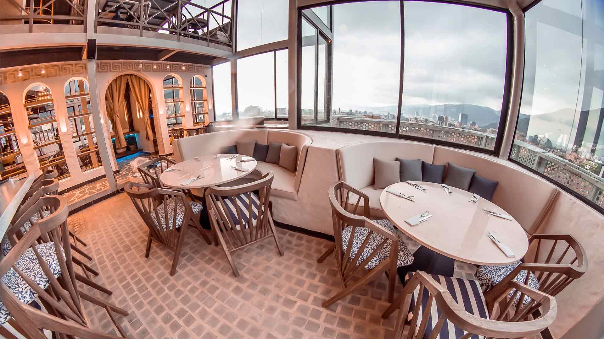 Inspirado en las tardes a la orilla del Mediterráneo, Santorini es un rooftop bogotano ofrece una experiencia mixológica y gastronómica única. Es ideal para disfrutar con amigos y compartir en familia de la imponente vista de la ciudad.